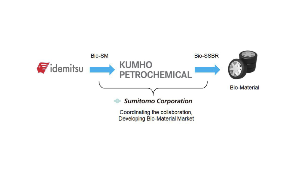 Idemitsu will produce bio-SM using the mass-balance method, and Kumho will produce bio-SSBR (solution styrene-butadiene rubber), one of the main products for high-performance tires using that bio-SM.