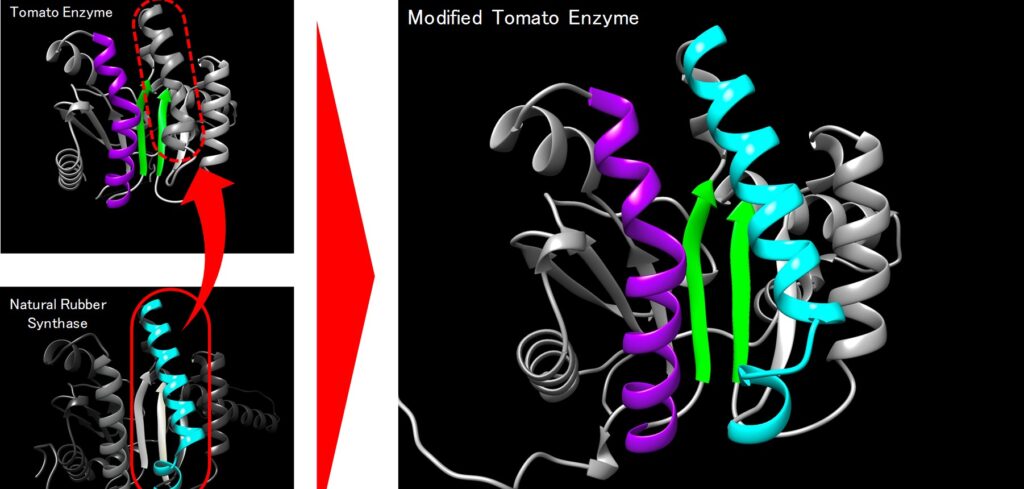 Through the research, teams succeeded in discovering the important segment that affects chain length by comparing the structures of the enzymes involved in the synthesis of natural rubber (long chains) with the structures of the enzymes involved in isoprene chain synthesis of tomatoes (short chains), as both of these enzymes belong to the same enzyme group and share similar structures.