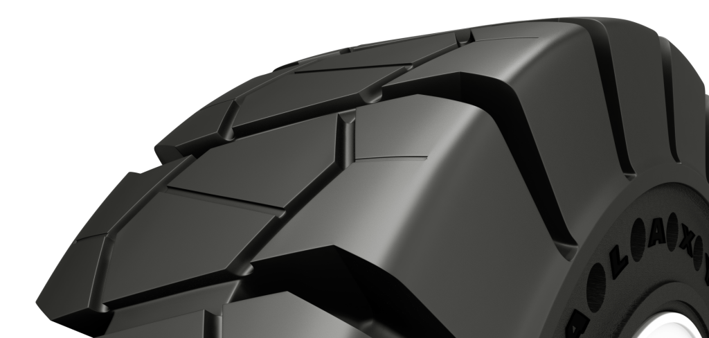 Produced using a special compound formulation, the tire features a solid construction to enable a high load carrying capacity and to prevent damaging attacks such as punctures, chipping and chunking, and to also prevent vehicle downtime. Sidewall apertures have been designed to ease tire fatigue on hard or uneven surfaces.