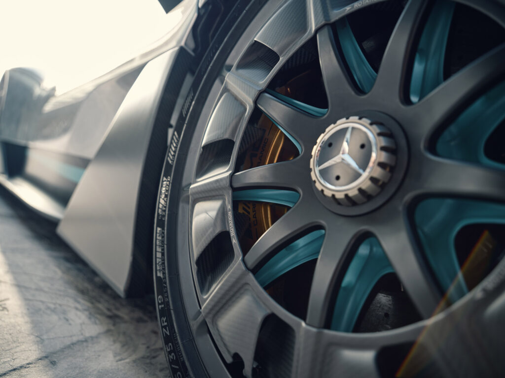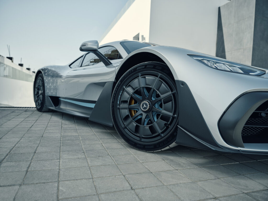 “In many respects, the Mercedes-AMG One is a very extreme vehicle with many technologies borrowed from top-level motorsport,” commented Dirk Heldmann, head of tire development at Mercedes-AMG. “It was therefore clear from the beginning of the development that it must also have the maximum performance for road-approved tires. That’s why we deliberately chose the Michelin Pilot Sport Cup 2 R. This tire combines a slick-like grip level with precise handling and a unique design. The sidewall features the silhouette of the Mercedes-AMG One and, of course, it also bears the MO1 marking – our rating for a tire custom-made for the respective AMG vehicle.”