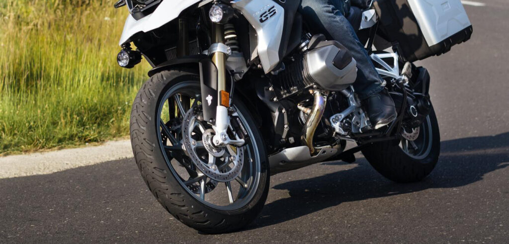 A 100% silica compound improves grip on damp and wet roads and also in cooler conditions without reducing tire life. Furthermore, Michelin’s 2CT+ (2 Compound Technology) on the front and rear wheels provides riders with different performance characteristics. A harder under layer of tread provides rigidity during cornering while a softer upper layer delivers grip and high mileage.