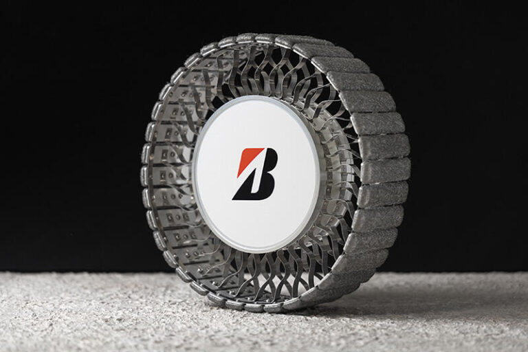 The tire is on display at Japan’s Space Industry booth, organized by the Japan Aerospace Exploration Agency. Bridgestone says its exhibit displays its commitment to space exploration and mobility evolution.