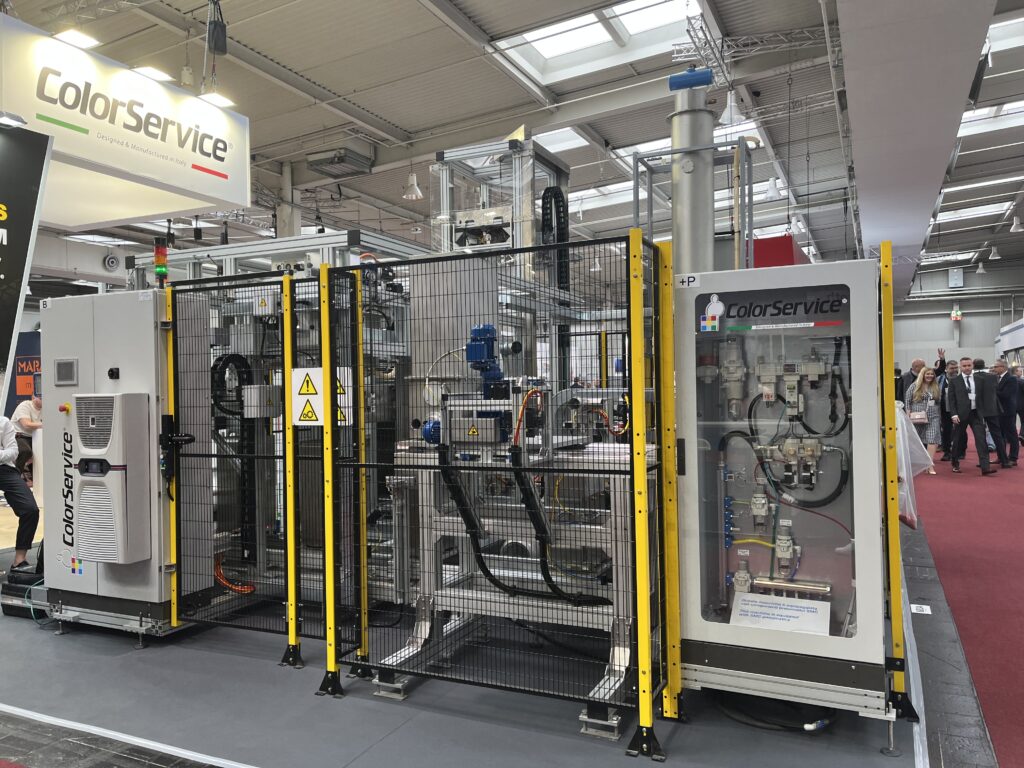 Color Service has a full-size demonstrator of its small chemicals weighing system on its booth at Tire Technology Expo in Hannover, Germany.