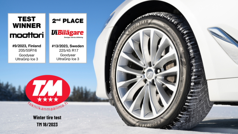 A similar success story unfolded in the winter tire test conducted by Finnish Tekniikan Maailma, where the UltraGrip Ice 3 shared first place among the nine Nordic friction tires tested. The magazine highlighted its exceptional performance in ice handling, ice braking and snow braking. Tekniikan Maailma’s experts awarded the tire top scores for braking and acceleration on snow and noted that Goodyear’s grip on ice is on par with the best friction tires, emphasizing the tire’s balanced properties in all conditions and its low noise level.