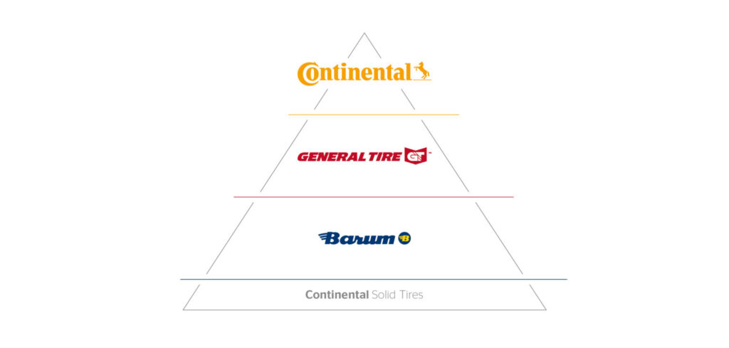 Continental Commercial Specialty Tires is to reposition itself in the industrial tire market with a three-brand strategy, consisting of a range of solid tires made under the Continental, General Tire and Barum brands. Continental will offer premium tires, while the General Tire brand is to offer products aimed at medium intensity applications, and Barum tires for low-intensity use.